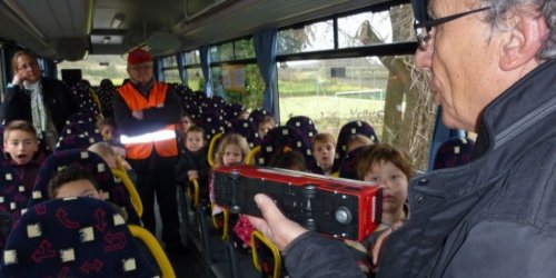 Puis les risques d'incident et d'accident ont été évoqués ainsi que la conduite à tenir pour tous les cas de figure : retournement du car, collision, incendie. Avec en exercice pratique la façon la plus adaptée de sortir dans chaque cas. Il a fallu recommencer à plusieurs reprises, mais, en fin de séance, il semblait bien que ces consignes indispensables étaient enregistrées dans la mémoire des enfants.