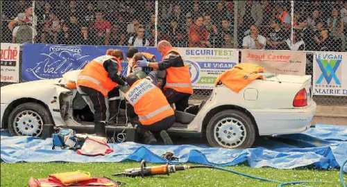 Les secours ont simulé la désincarcération d’un blessé dans son véhicule.