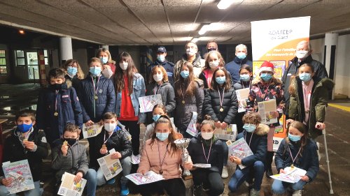 Les collégiens ont reçu la coupe du challenge de la sécurité dans les transports scolaires. |