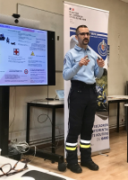 Les 3 classes de 6ème sont très réactives, de nombreuses questions sont posées et les élèves relèvent le défi du challenge de l'évacuation rapide. Les temps sont 24-25-28 secondes.