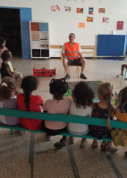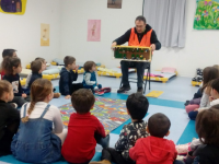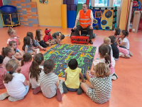 Grosse journée pour les intervenants de l'Adateep du Gard. Une équipe se rend à l'école maternelle de Domessargues ou un car est présent pour sensibiliser les 3 classes de l'école.