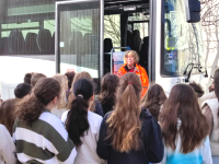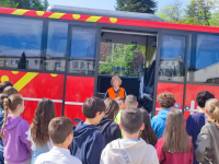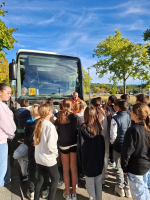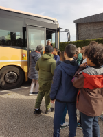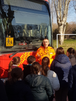 Nous sommes accueillis par la principale adjointe. Le car mis à disposition par Transdev est stationné près de la salle polyvalente ce qui limite les déplacements et donne plus de temps pour la formation. Les élèves et les professeurs sont ravis de nous voir et de participer aux exercices d'évacuation.