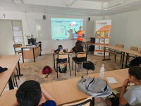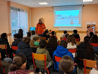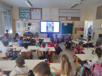 Établissement sans transport scolaire, l’intervention se déroule avec la projection d’une dizaine de courtes vidéos. L’objectif est de discuter avec les enfants pour qu’ils comprennent les déplacements avec leurs dangers et comment être prudents.