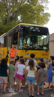 Le premier car est pour les 3 classes de maternelle de Domessargues qui après le tapis de sol et le car en bois découvrent le véhicule. Le second car débute son périple par la commune de Mauressargues avant de se rende à Montagnac.