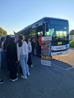 Pour la seconde fois l'Adateep du Gard se rend au collège Saint Félix de Beaucaire sur un site complétement rénové qui a été ouvert en septembre 2023. Le car mis à disposition par Kéolis est stationné près des classes.