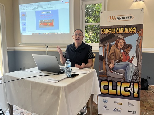 Le slogan pour 2025 est " Dans le car aussi Clic ! ". En présence de Pierre Behaeghel, responsable de la sécurité routière à la préfecture du Gard, le président Jean-Luc Minet et deux intervenants ont accueilli les classes de 6e pour une séquence de 50 minutes. La partie théorique permet de sensibiliser aux dangers dans et autour du car.