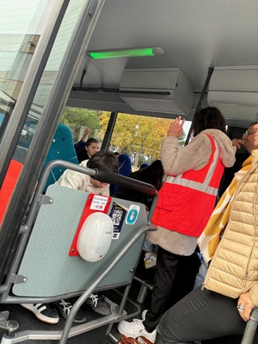 à la montée dans le car, il faut faire attention.