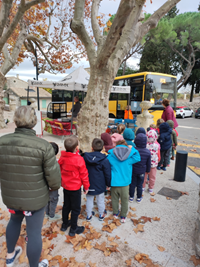 Grosse journée pour les intervenants de l'Adateep du Gard. Une équipe se rend à l'école maternelle de Domessargues ou un car est présent pour sensibiliser les 3 classes de l'école.