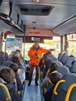 Nous sommes accueillis par la principale adjointe. Le car mis à disposition par Transdev est stationné près de la salle polyvalente ce qui limite les déplacements et donne plus de temps pour la formation. Les élèves et les professeurs sont ravis de nous voir et de participer aux exercices d'évacuation.
